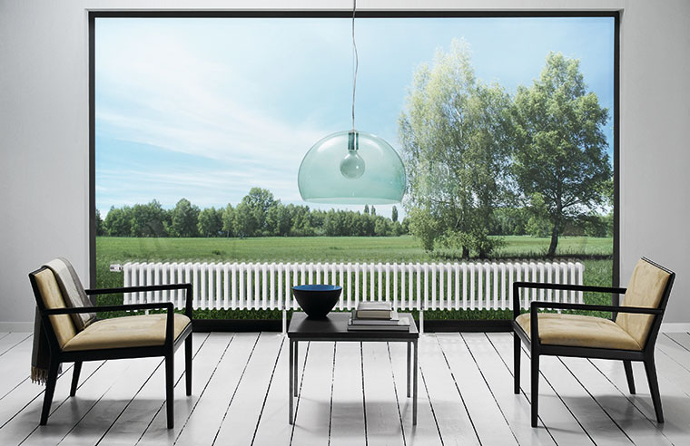 Tässä tapauksessa suosittelemme ikkunan eteen Delta jaeradiaattoria, joko mallia DL 3 tai DL 4. Delta on saatavilla 72 eri värissä, ja se voidaan asettaa lattiakannattimilla ikkunan eteen. Koska auringonvalo pääsee loistamaan radiaattorin läpi, saat ikkunan eteen “kevyemmän” radiaattoriratkaisun.